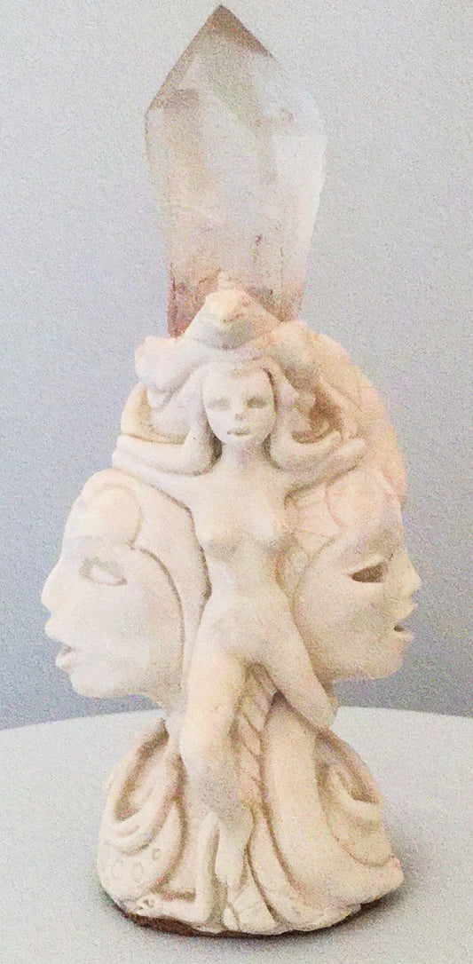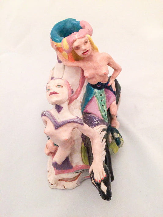 Porcelain Sculpture w Large Crystal Faces and Figures