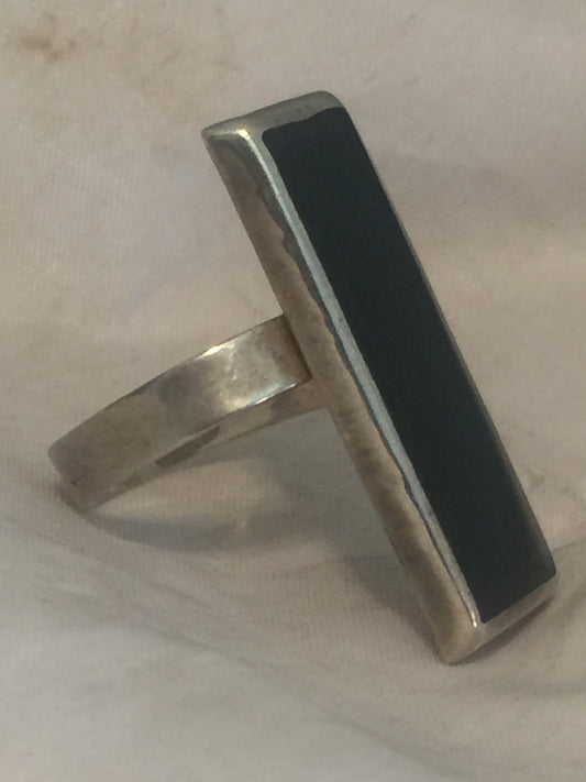 Vintage Sterling Silver Long Onyx Ring ADJ Size 7.5 - 10 4.3g Mexico