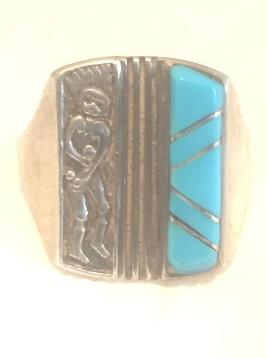 Vintage Sterling Southwest Tribal Turquoise Kachina Dancer Ring Size 10 10.4g