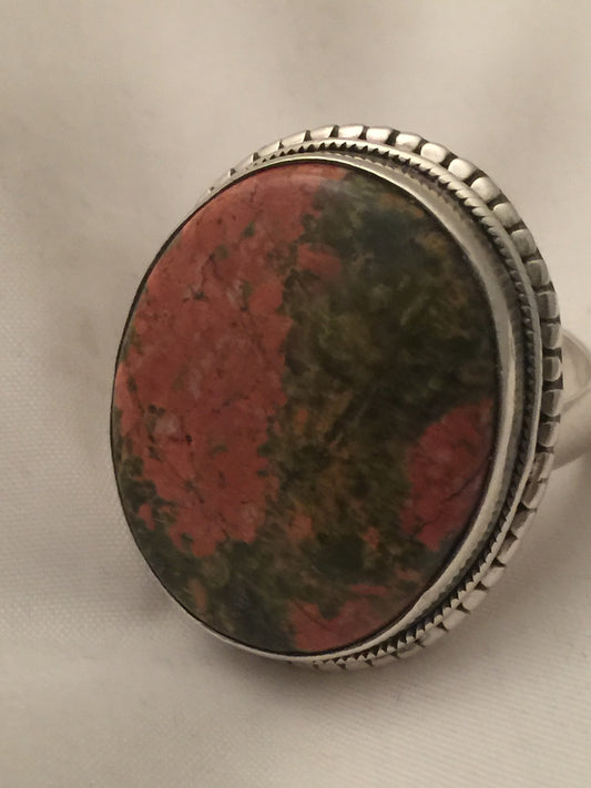 Vintage Sterling Silver Big Round Unakite Southwestern Tribal Size 9.5 13.7g