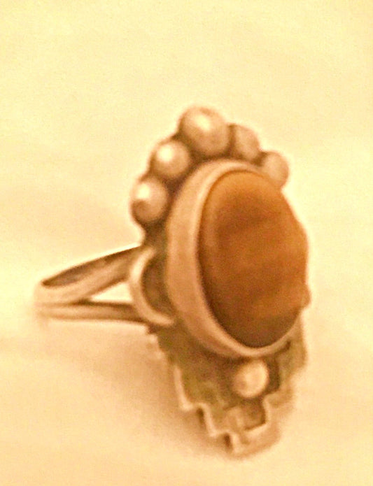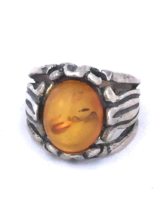 Vintage Sterling Silver Amber Ring Handmade Size 6 6.1g