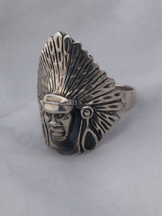 Vintage Sterling Silver Native American Chief Ring Southwestern & Tribal Size 14.75 Weight 11.6g