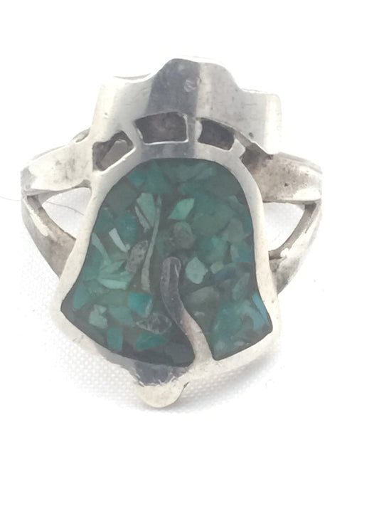 Vintage Sterling Silver Southwest Tribal Liberty Bell Ring Turquoise Chips Size 5.75 4.6g