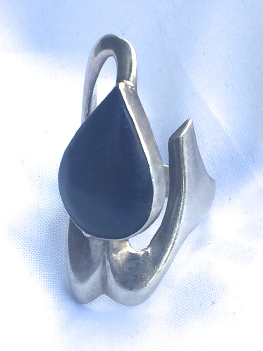 Vintage Sterling Silver Blue Lapis Teardrop Ring Signed Size 5.25 11.3 g