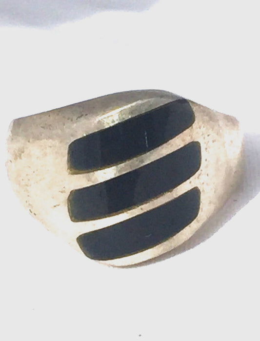 Vintage Sterling Silver Onyx Ring Made in Mexico Size 8.25 11.3g