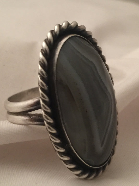 Vintage Sterling Silver Southwest Tribal Agate Ring Size 10 Weight 14.9g