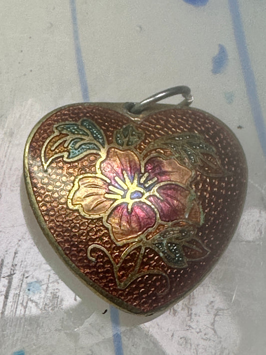 2 Heart Shaped Cloisonne pendants Double Sided with floral flower designs
