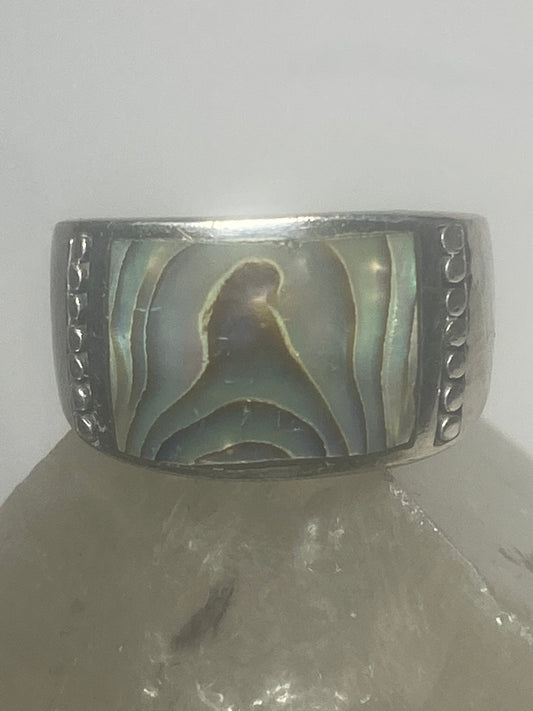 Abalone ring cigar band sterling silver women girls boys