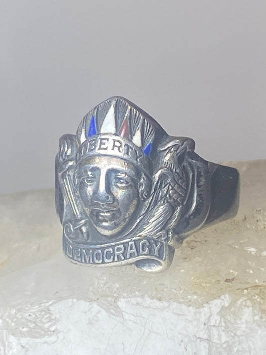 1938 Liberty Democracy Ring size 9.75 Samuel Jaffe Patent sterling silver