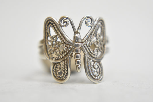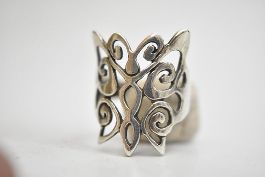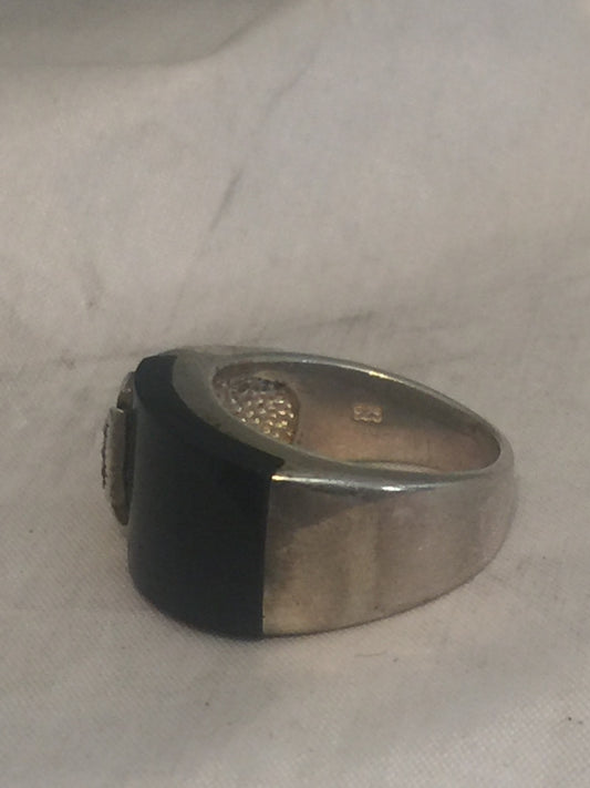 Vintage Sterling Silver Onyx & Marcasite Butterfly Band Size 7 11.2g