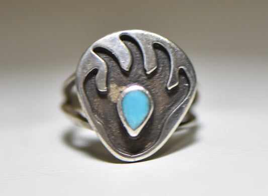 Bear ring Navajo turquoise claw pinky bear footprint sterling silver girls women c