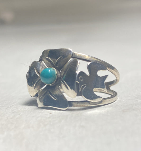 Turquoise ring flower bird 4 leaf clover good luck Mexico sterling silver band women girls