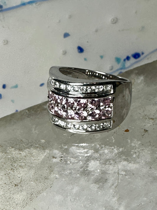 Pink CZ ring Cigar band cocktail size 7 sterling silver women girls