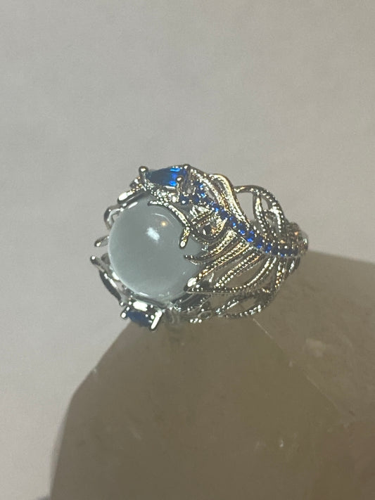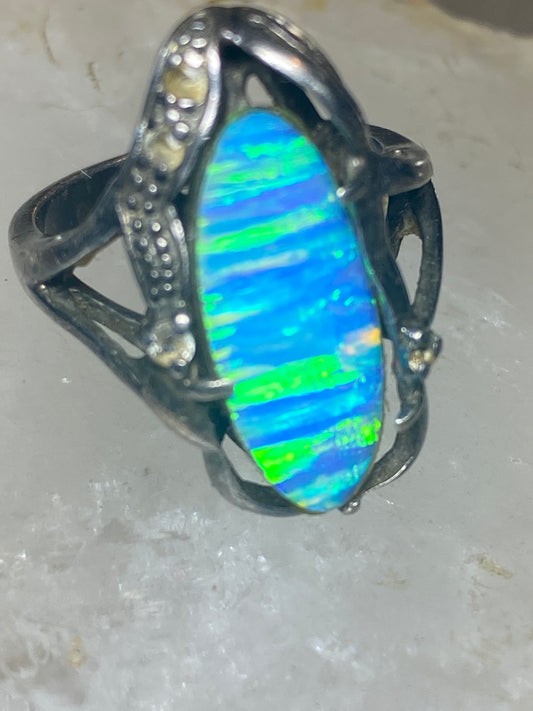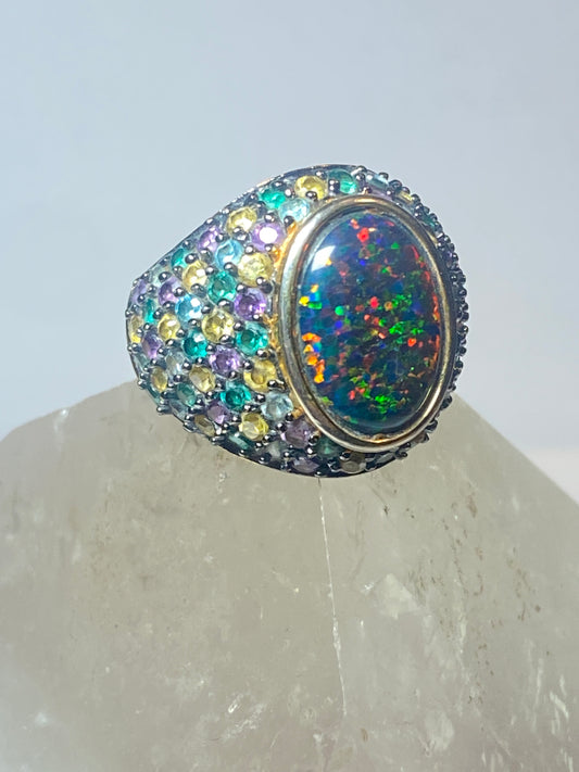 Lab opal ring rainbow crystals cocktail sterling silver girls women