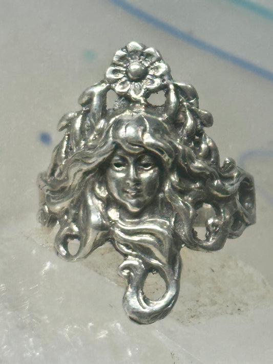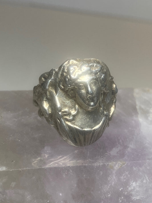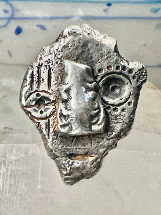 Face ring Heavy Abstract figurative face primitive size 11 sterling silver women men