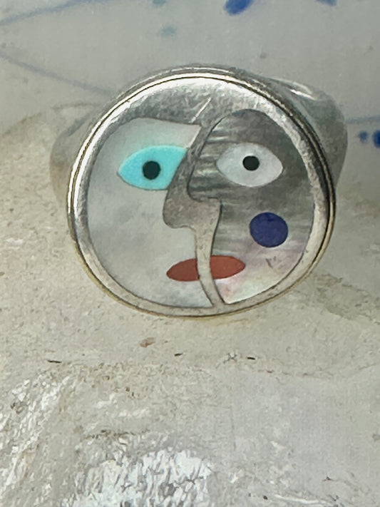 Eric Grossbardt ring size 8.50 face band mop inlay Picasso influences sterling silver