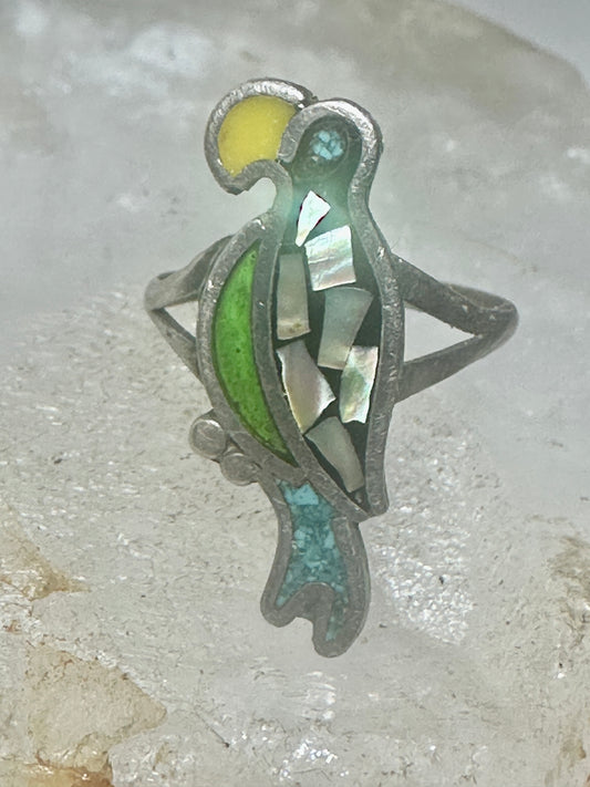 Toucan ring parrot turquoise abalone southwest Size 7.50 sterling silver women girls