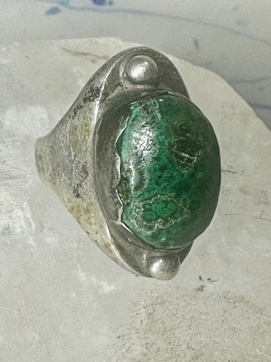 Navajo ring green turquoise solid Size 6 sterling silver women men