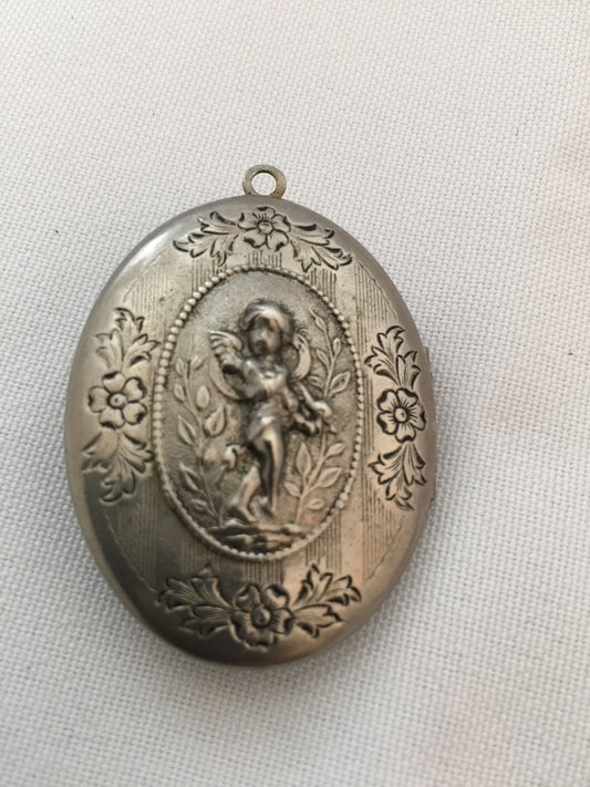 Vintage Locket with raised Angel w Wings Cupid on Both Sides
