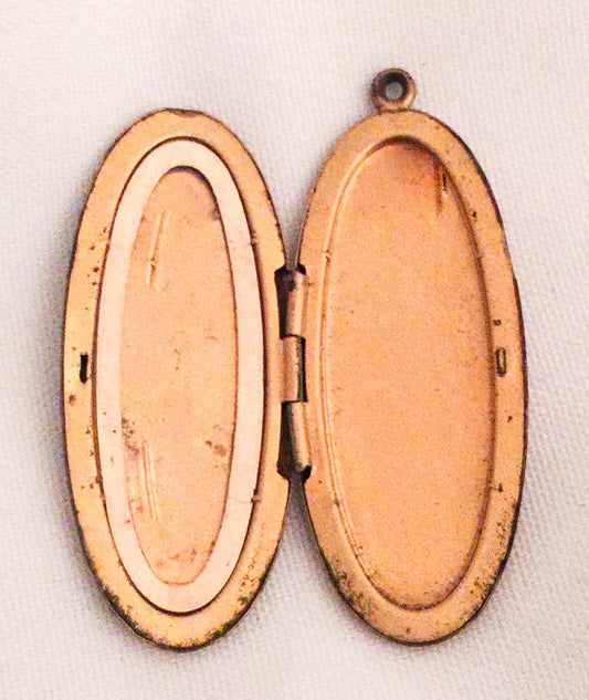 Victorian Locket Antique Long Oval Shaped Gold Rolled Filled Bee Logo