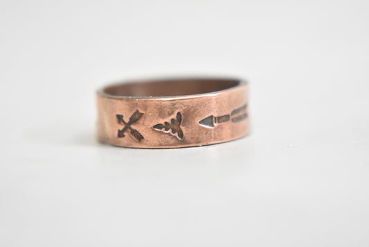 Crossed Arrows ring spears copper Native American band Size 5.50