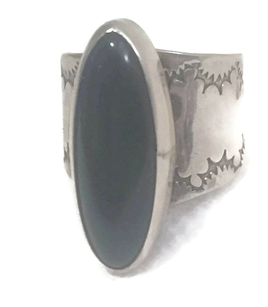 Navajo Onyx Ring Long Sterling Silver Size 5.75