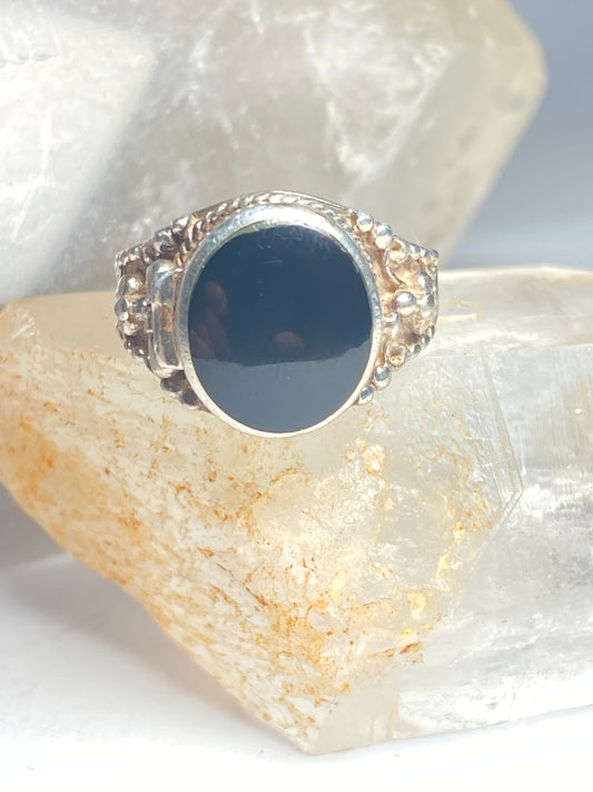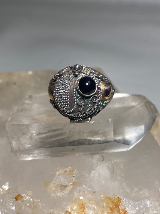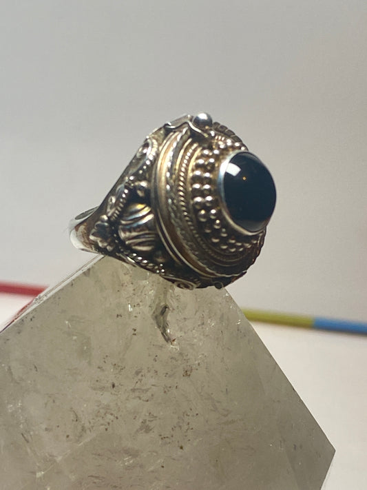 Poison ring size 6.75 onyx w overlay metal (coppery goldish tone) sterling silver women girls