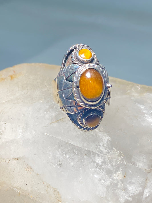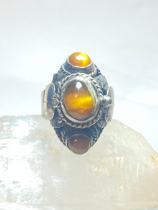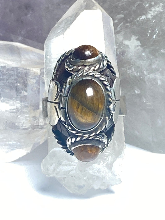Poison ring size 8.50 Tiger Eye long Mexico sterling silver women girls