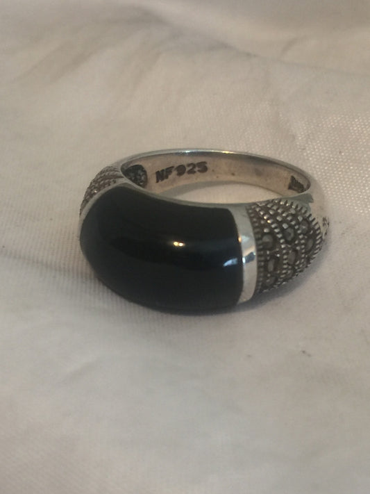 Vintage Sterling Silver Onyx & Marcasites Band Ring Size 7 5.7g