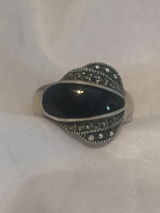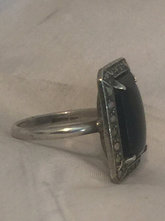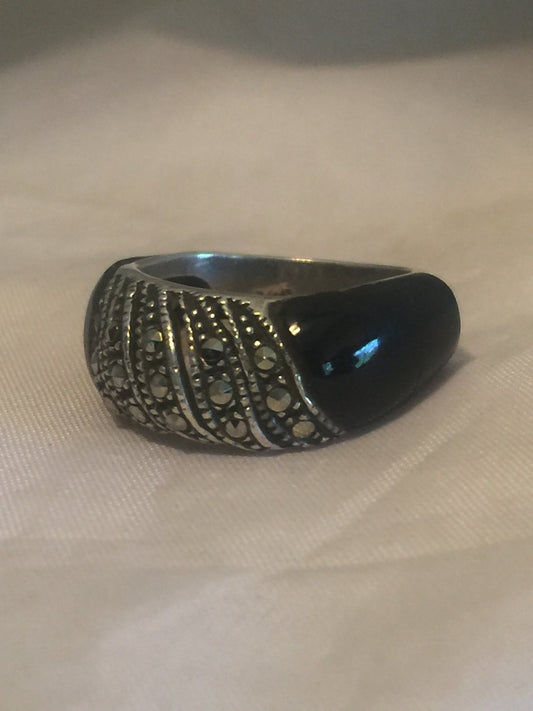 Vintage Sterling Silver Onyx & Marcasites Ring Size 5.5 4.7g