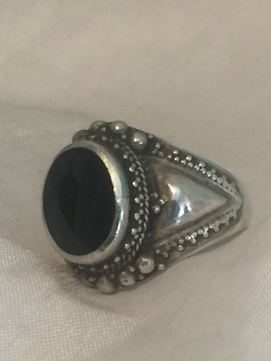 Vintage Sterling Silver Onyx Ring Size 5.50 4.2g