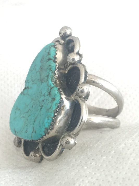Vintage Sterling Silver Southwest Tribal Ring Turquoise Size 9.75 17g