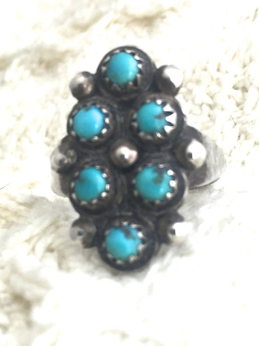 Vintage Sterling Silver Southwestern Tribal Turquoise Ring Petite Pointe Size 6.5 4.8g