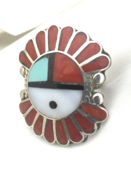 Vintage Sterling Silver Southwest Tribal Ring Sun Face Chief Size 5.75 10.3g
