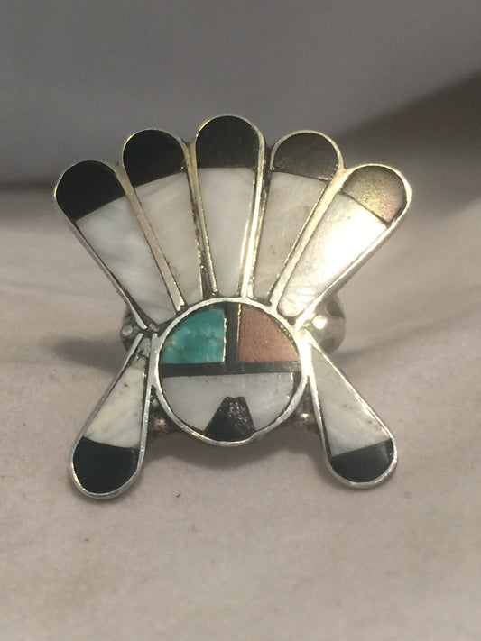 Vintage Sterling Silver Southwest Tribal Chief Sun Ring Size 5.25 5.8g