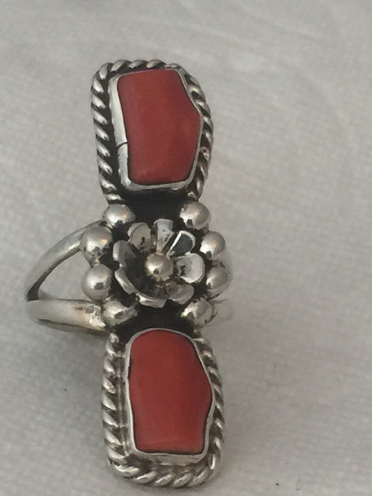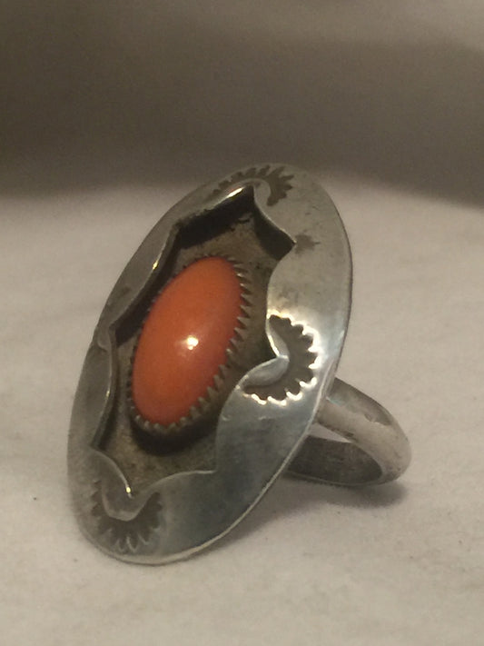 Vintage Sterling Silver Native American Navajo Coral Ring Size 6 7.8g
