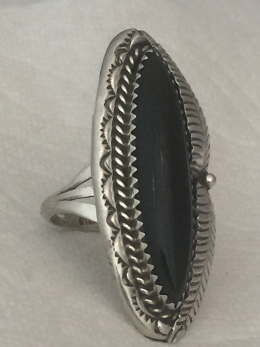 Vintage Sterling SIlver Native American Navajo Onyx Ring Size 7.75 6.6g