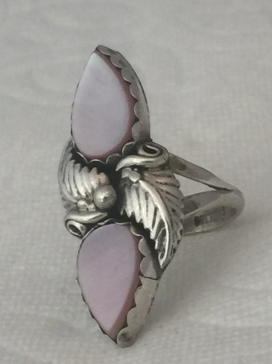 Vintage Sterling Silver Native American Navajo Mother of Pearl Ring Size 7.25 5.3g