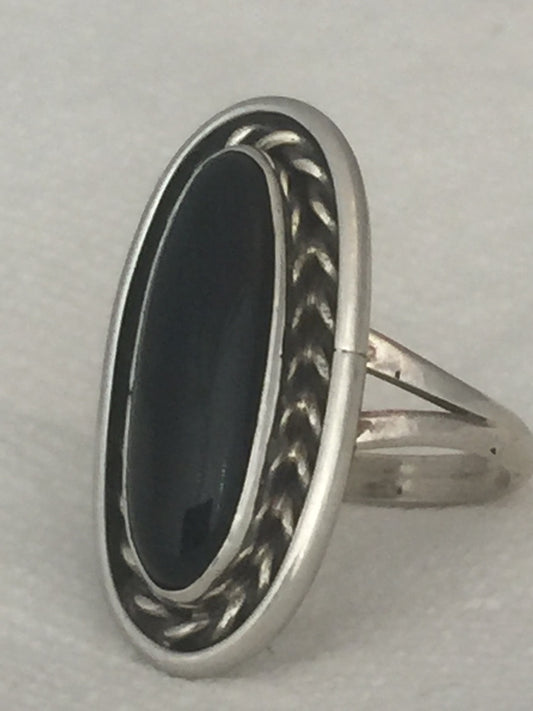 Vintage Sterling Silver Native American Navajo Onyx Ring Size 5.5 5.4g