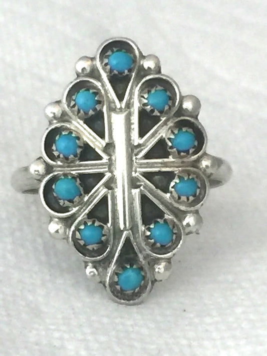 Zuni Turquoise Ring Vintage Sterling Silver Native American Size 7 Signed R Dishta