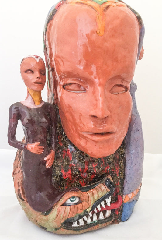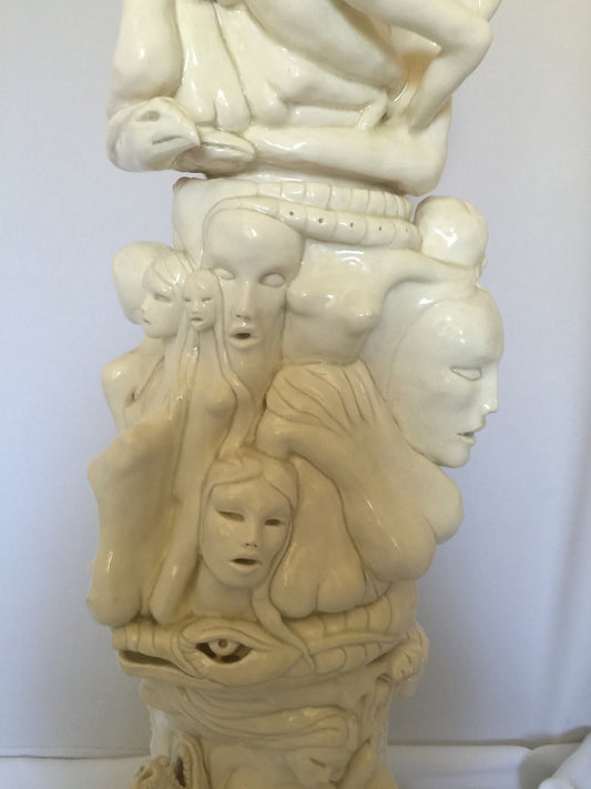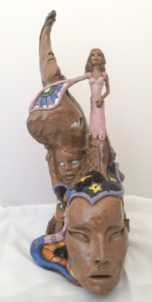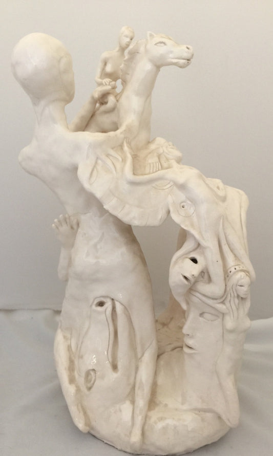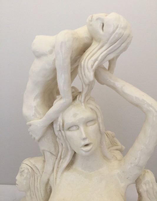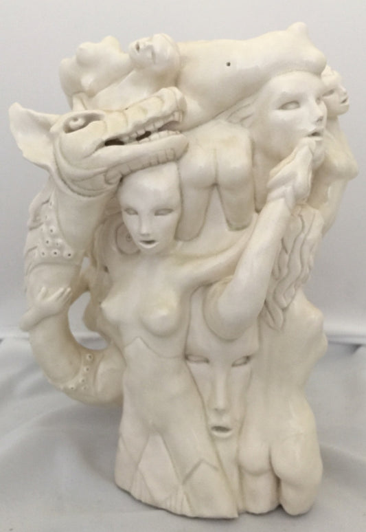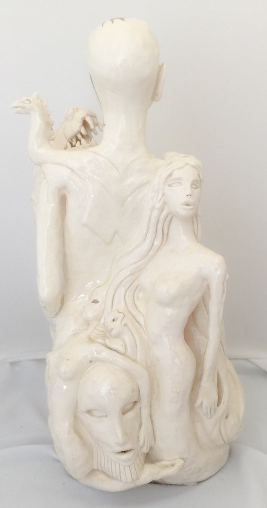 Porcelain Figurative Sculpture "Three Heads Better than One"