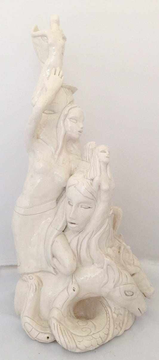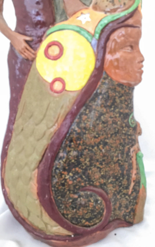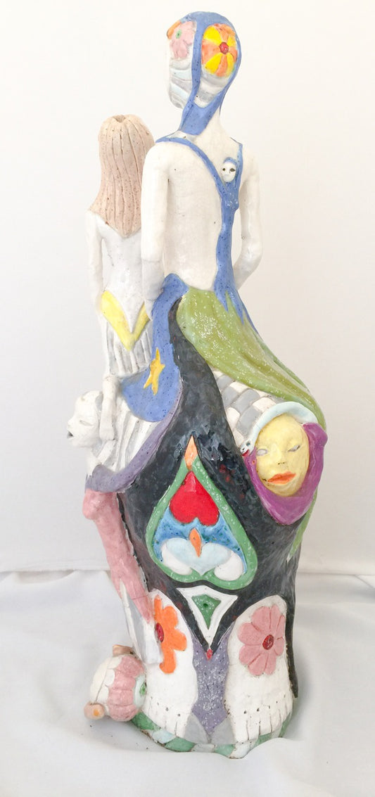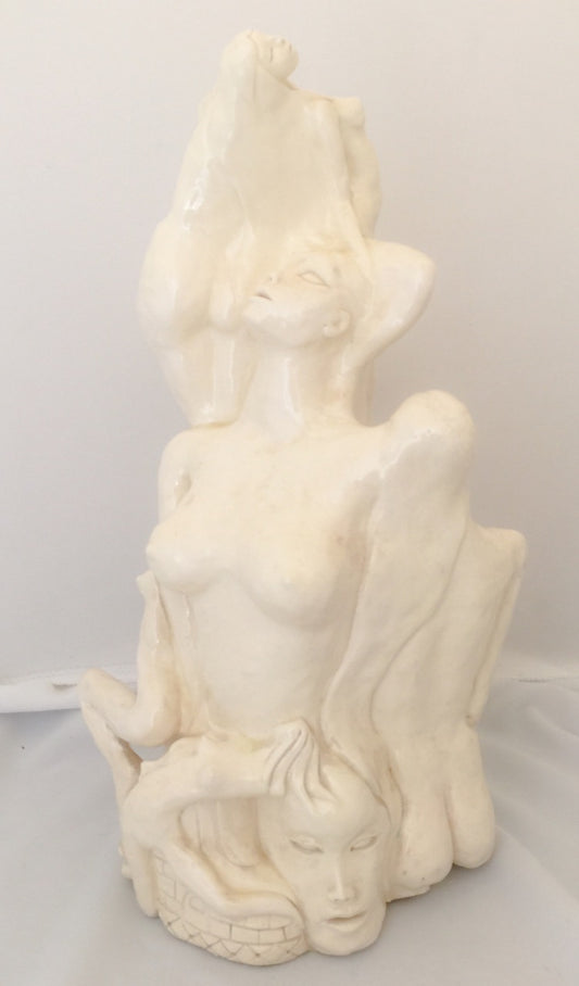 Black Mountain Clay Ceramic Sculpture "Lady with Bird"