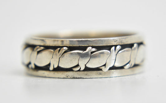 Barbed wire spinner ring men band sterling silver southwest Size 12.50