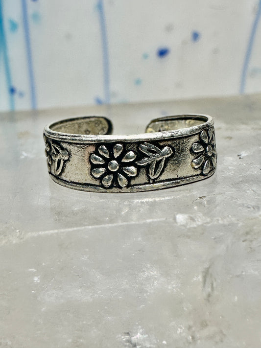 Toe ring flower band design floral size 3 adj sterling silver women girls