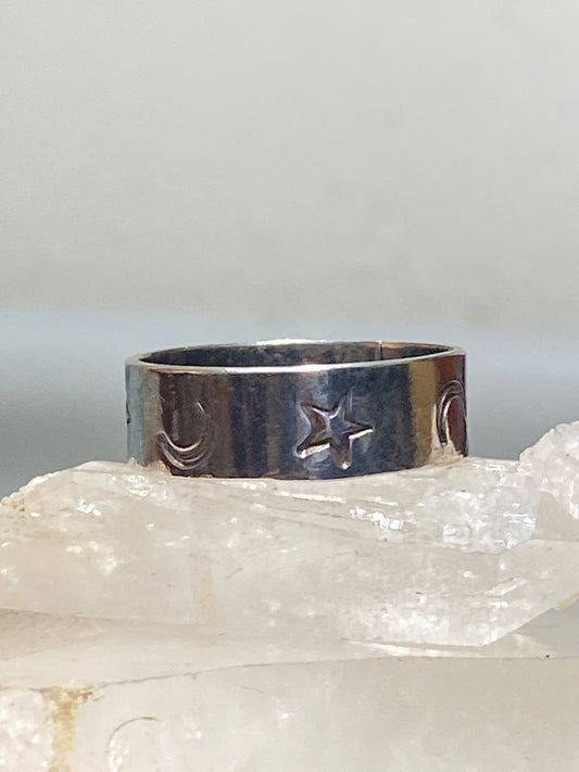 Stars Moon ring celestial band sterling silver women men