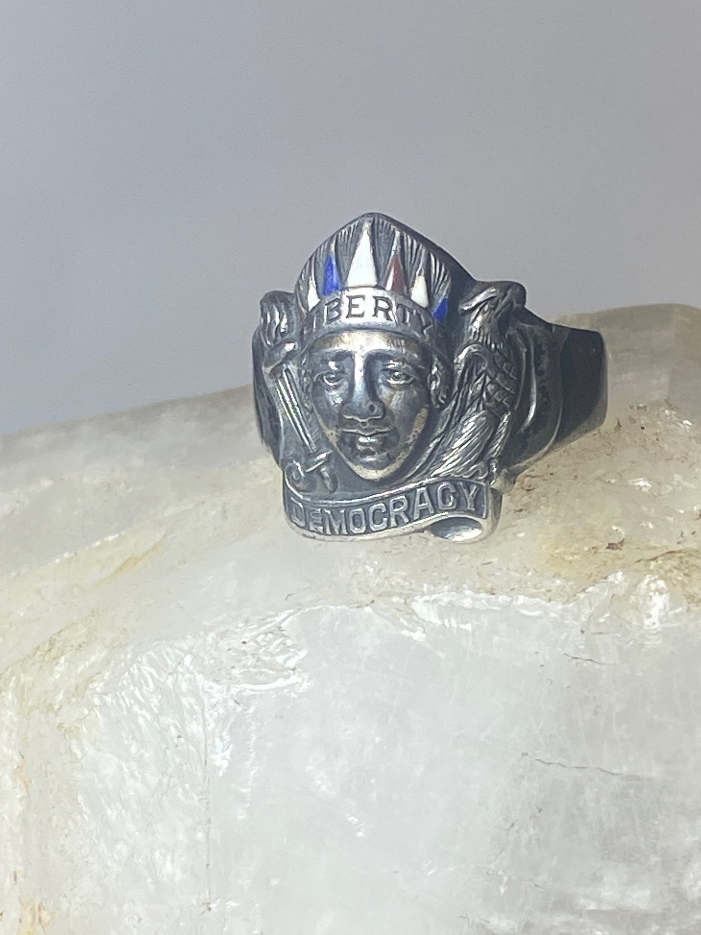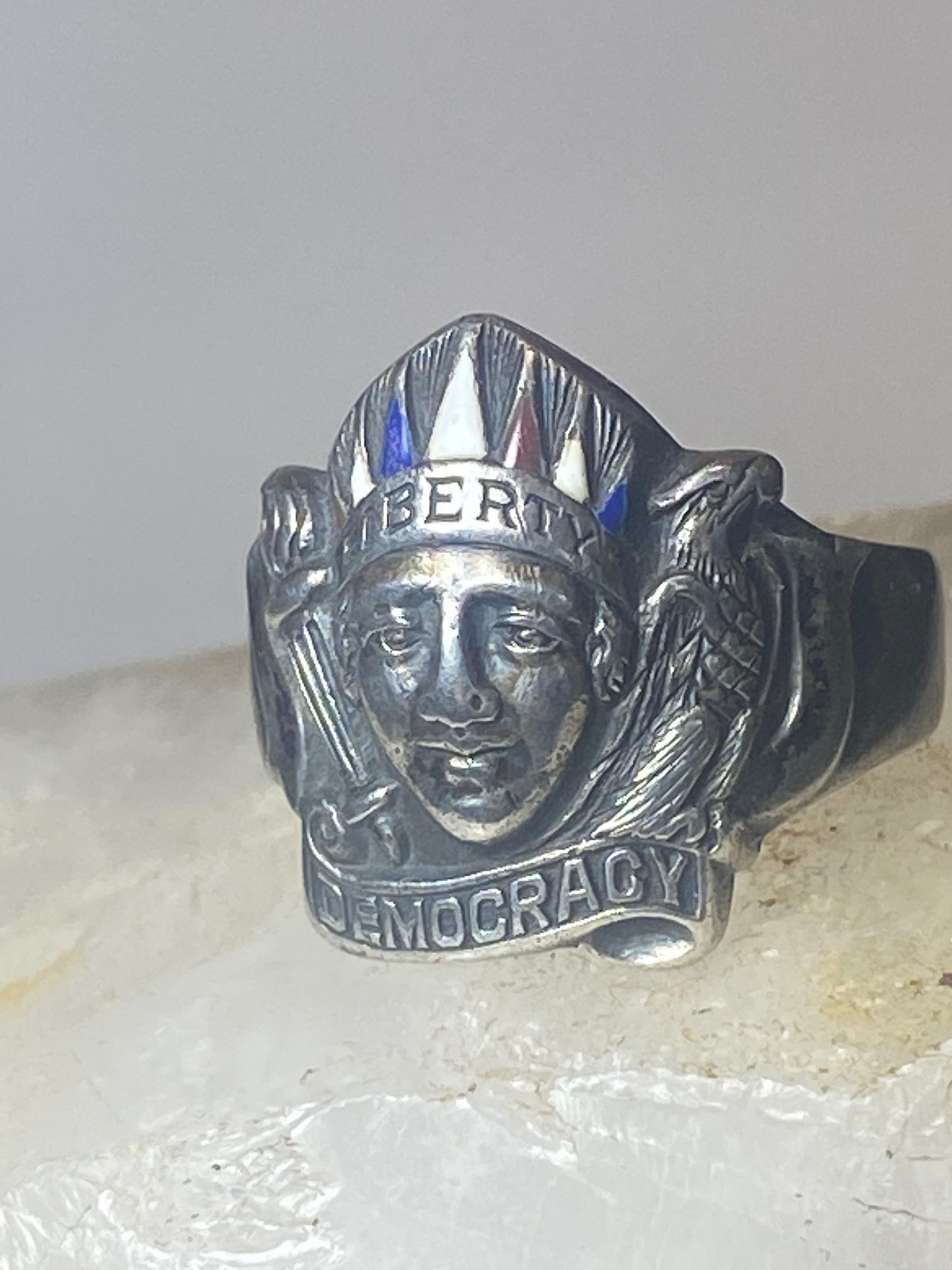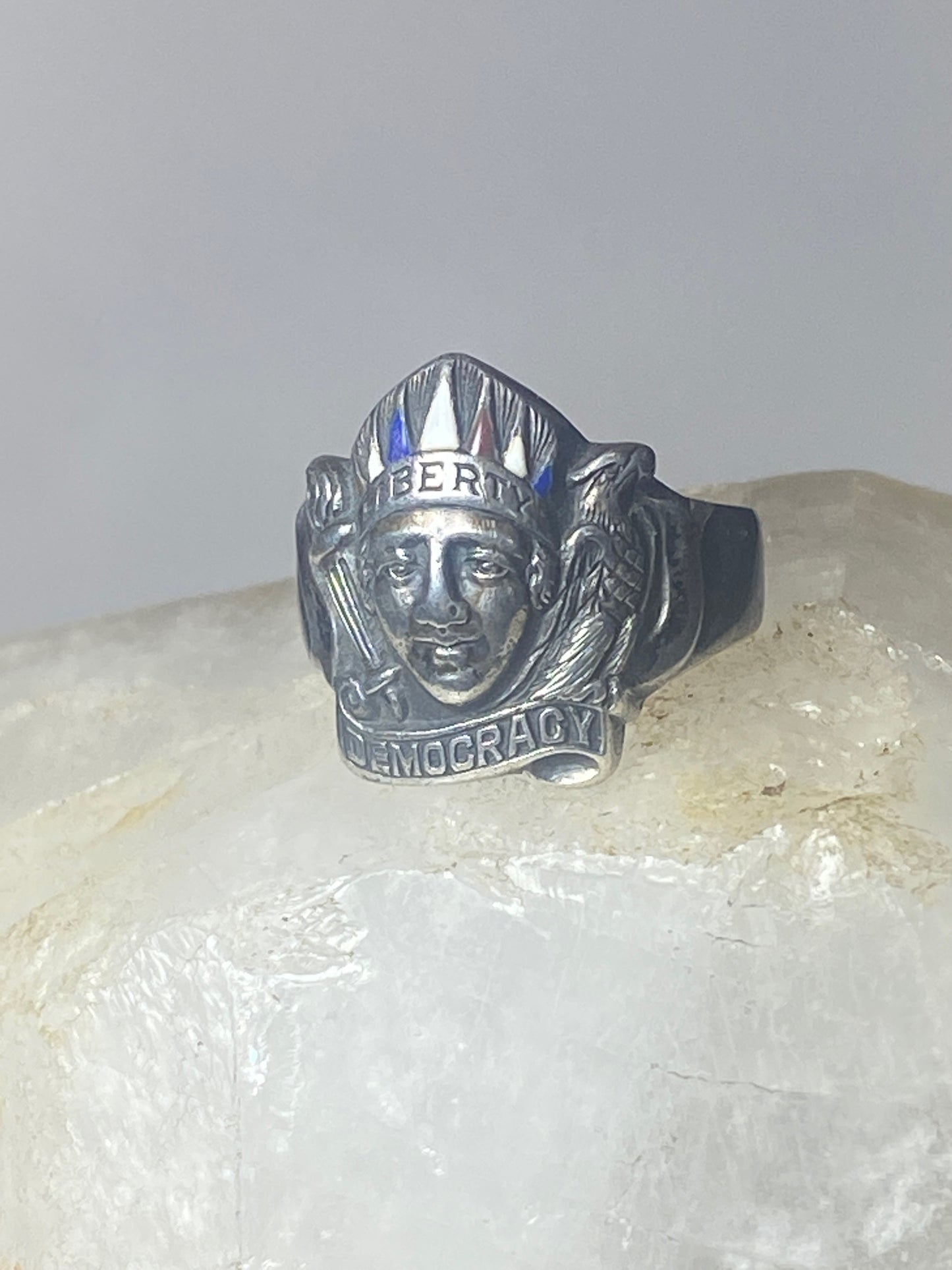 1938 Liberty Democracy Ring size 9.75 Samuel Jaffe Patent sterling silver
