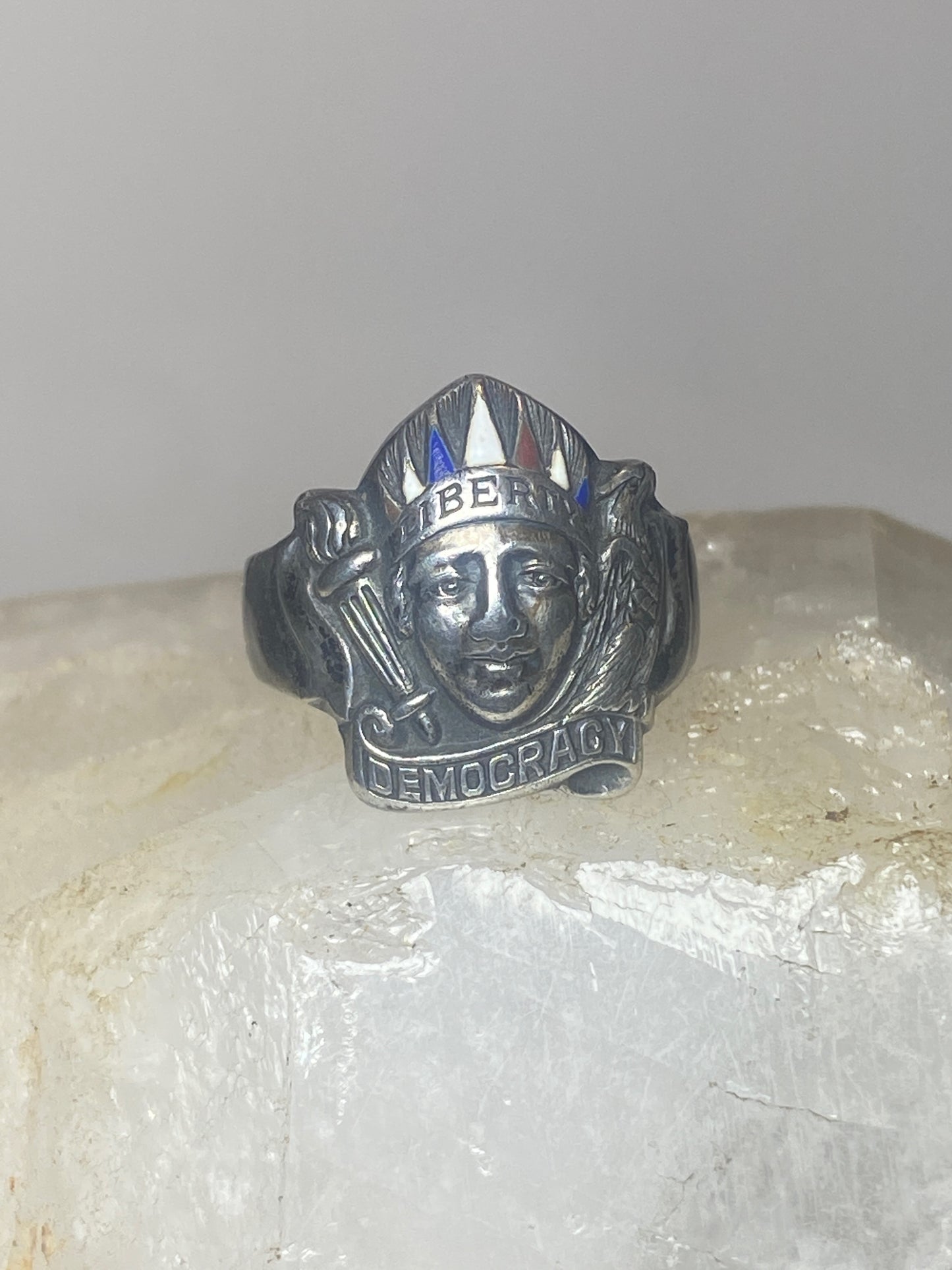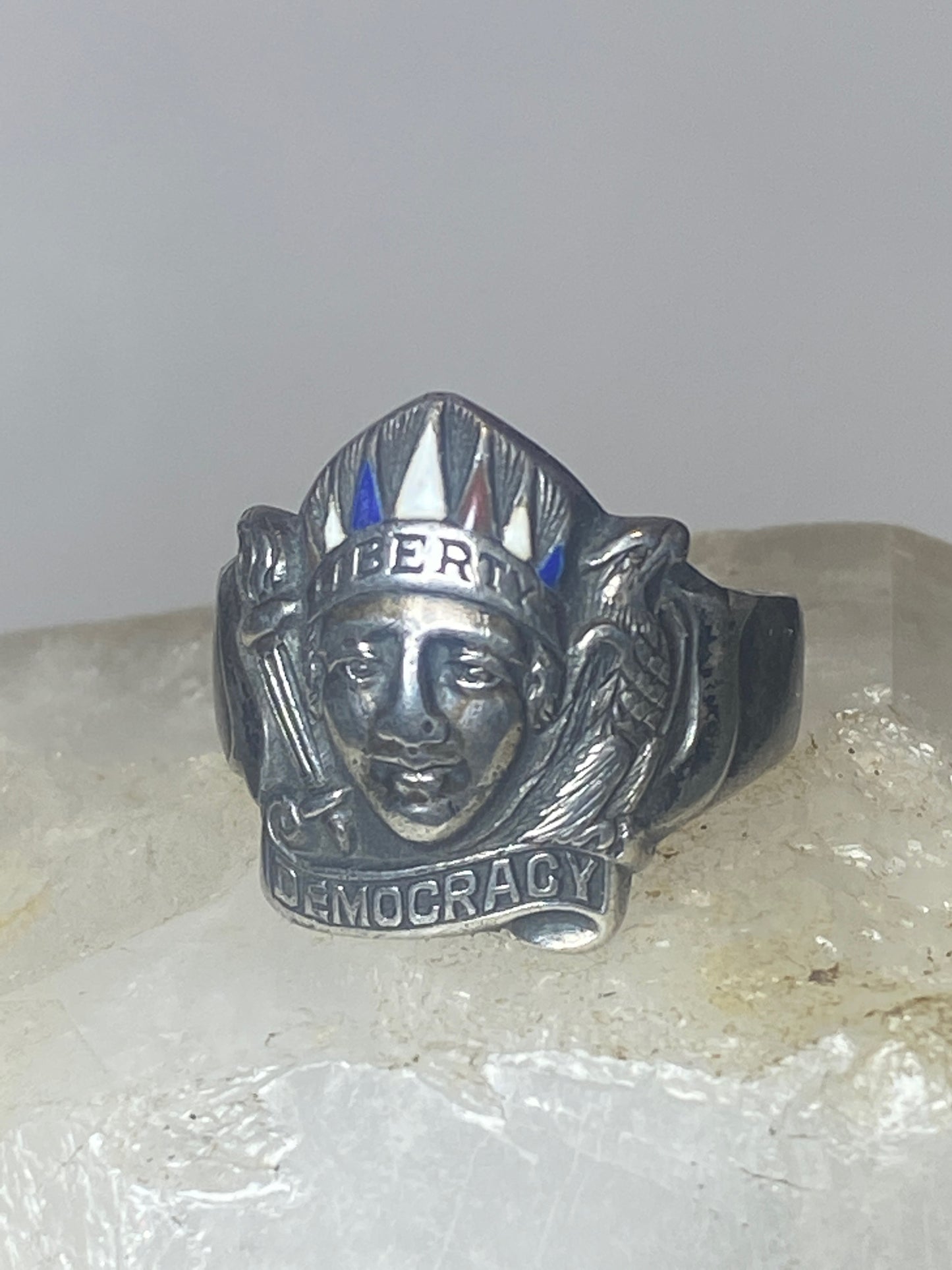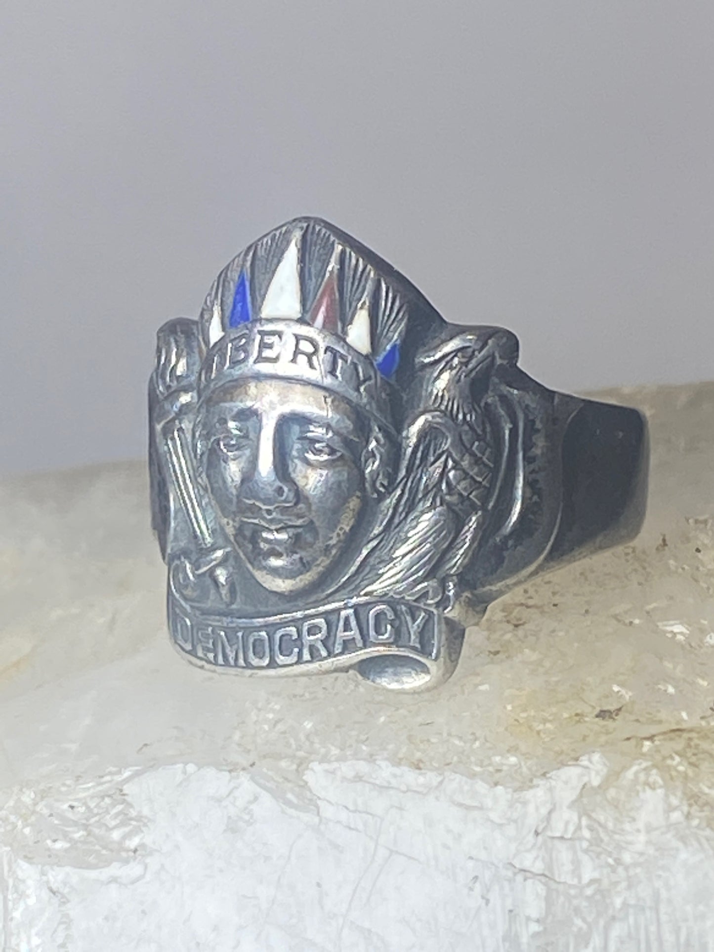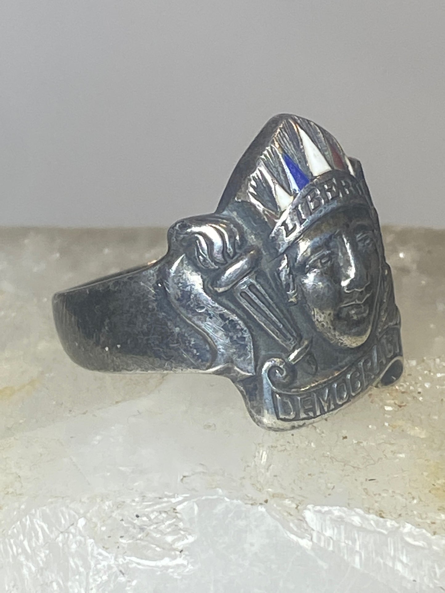 1938 Liberty Democracy Ring size 9.75 Samuel Jaffe Patent sterling silver