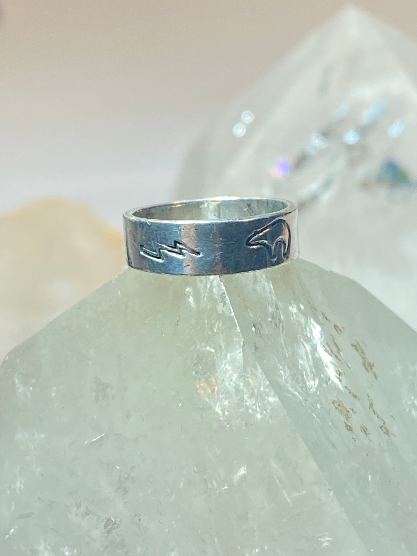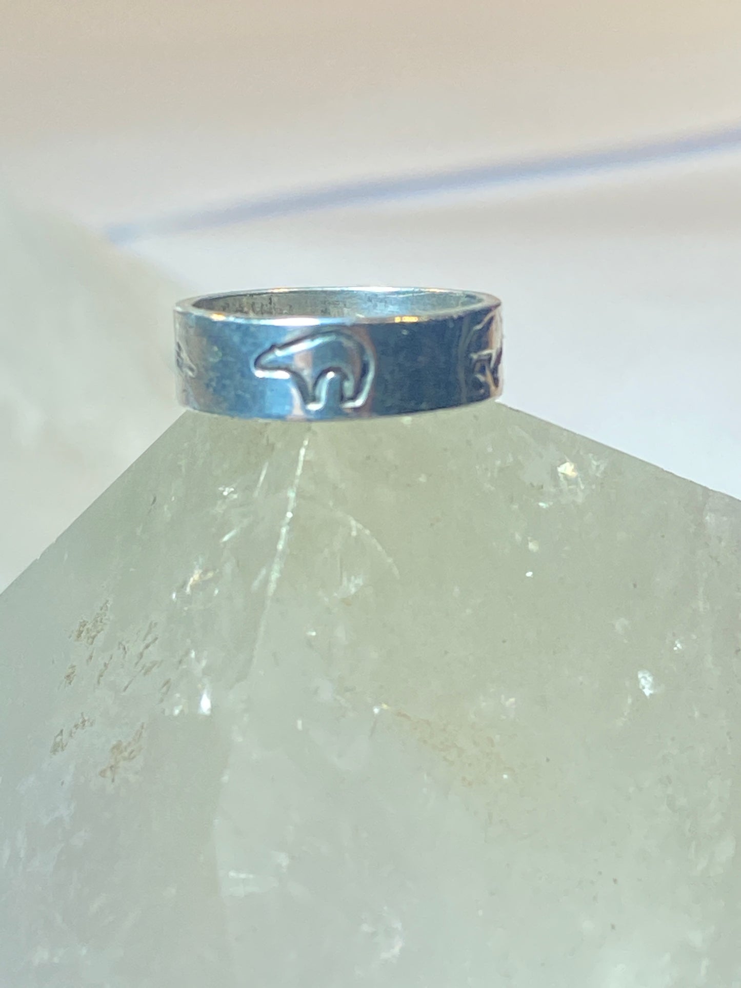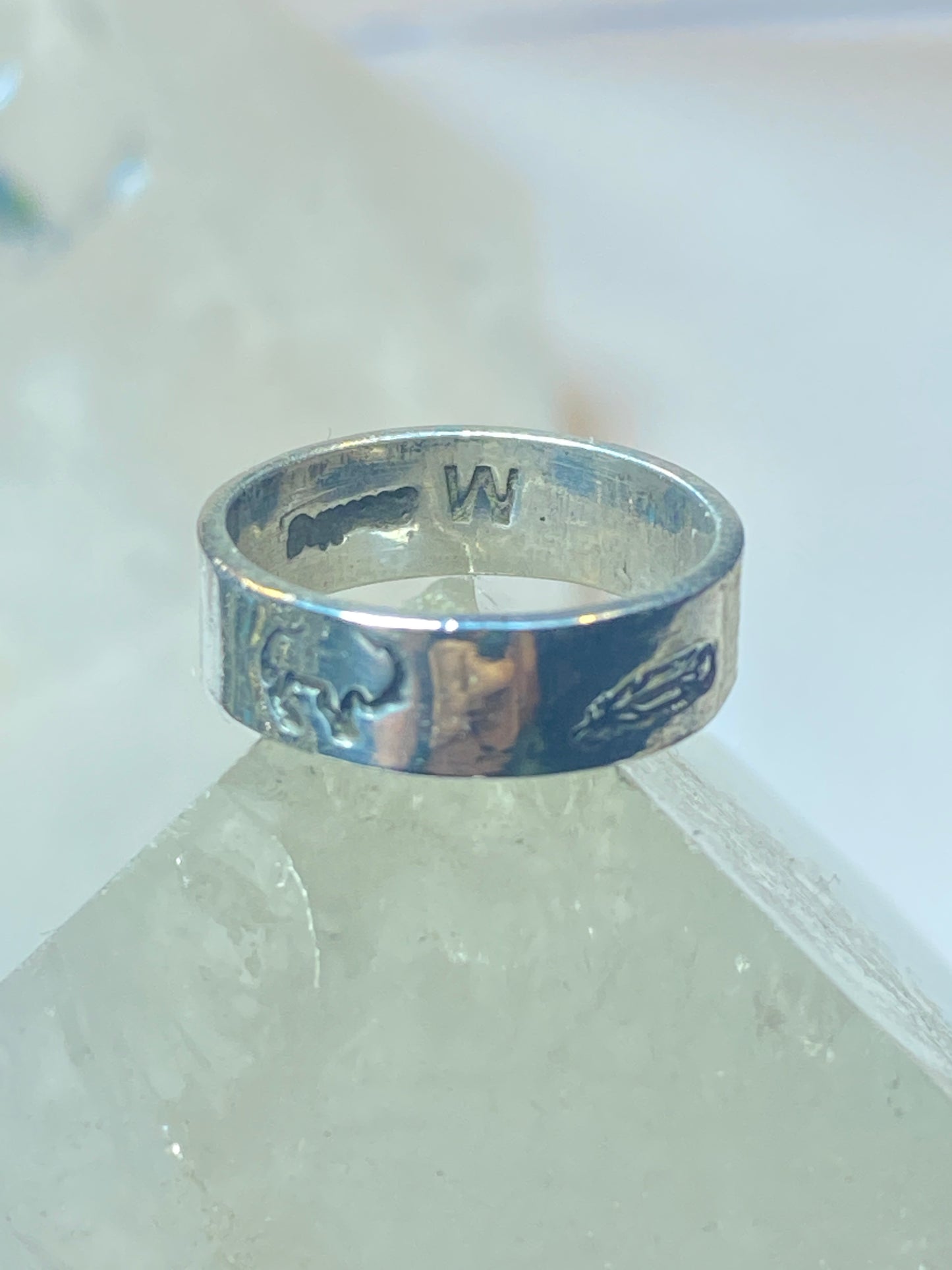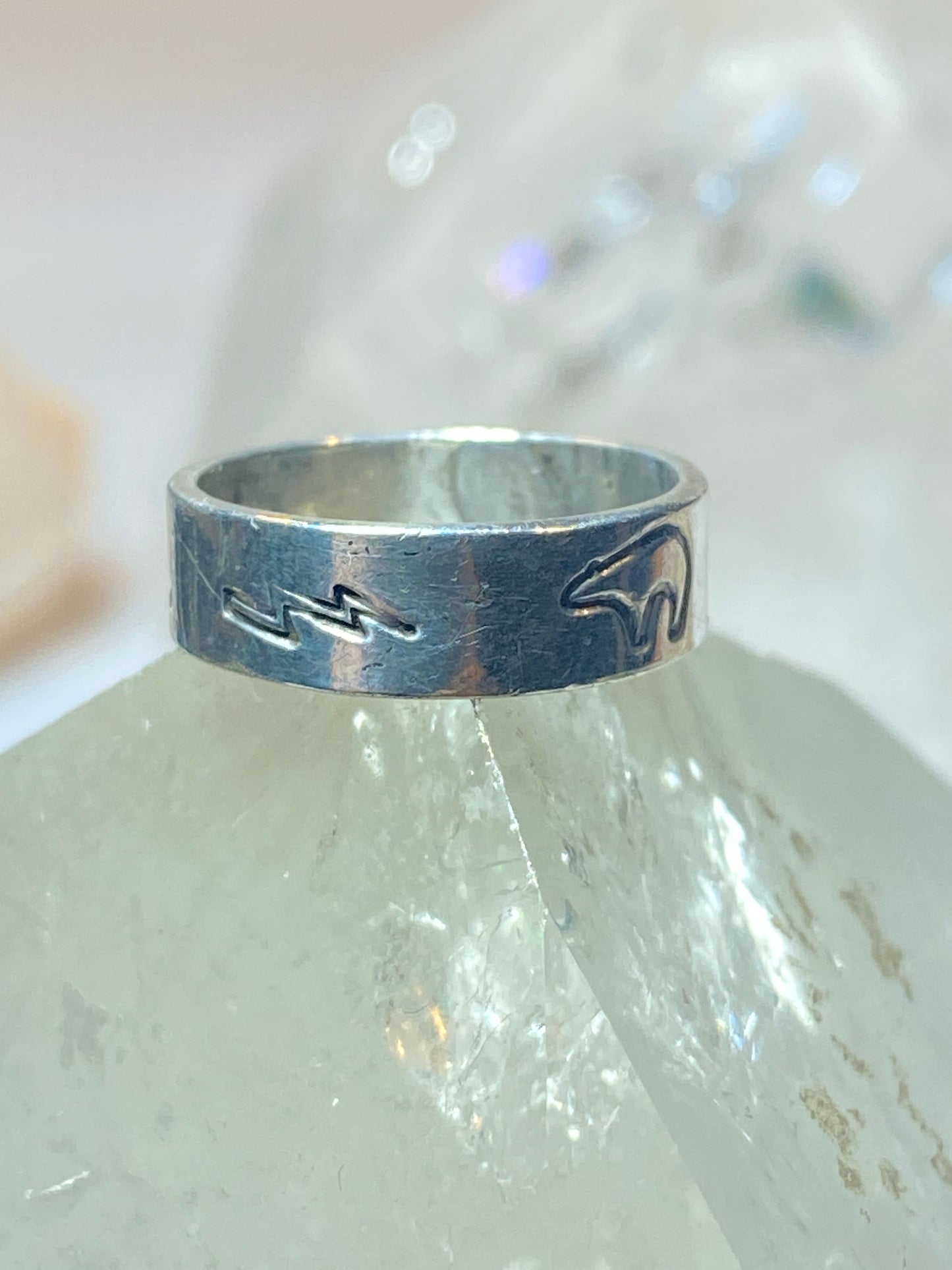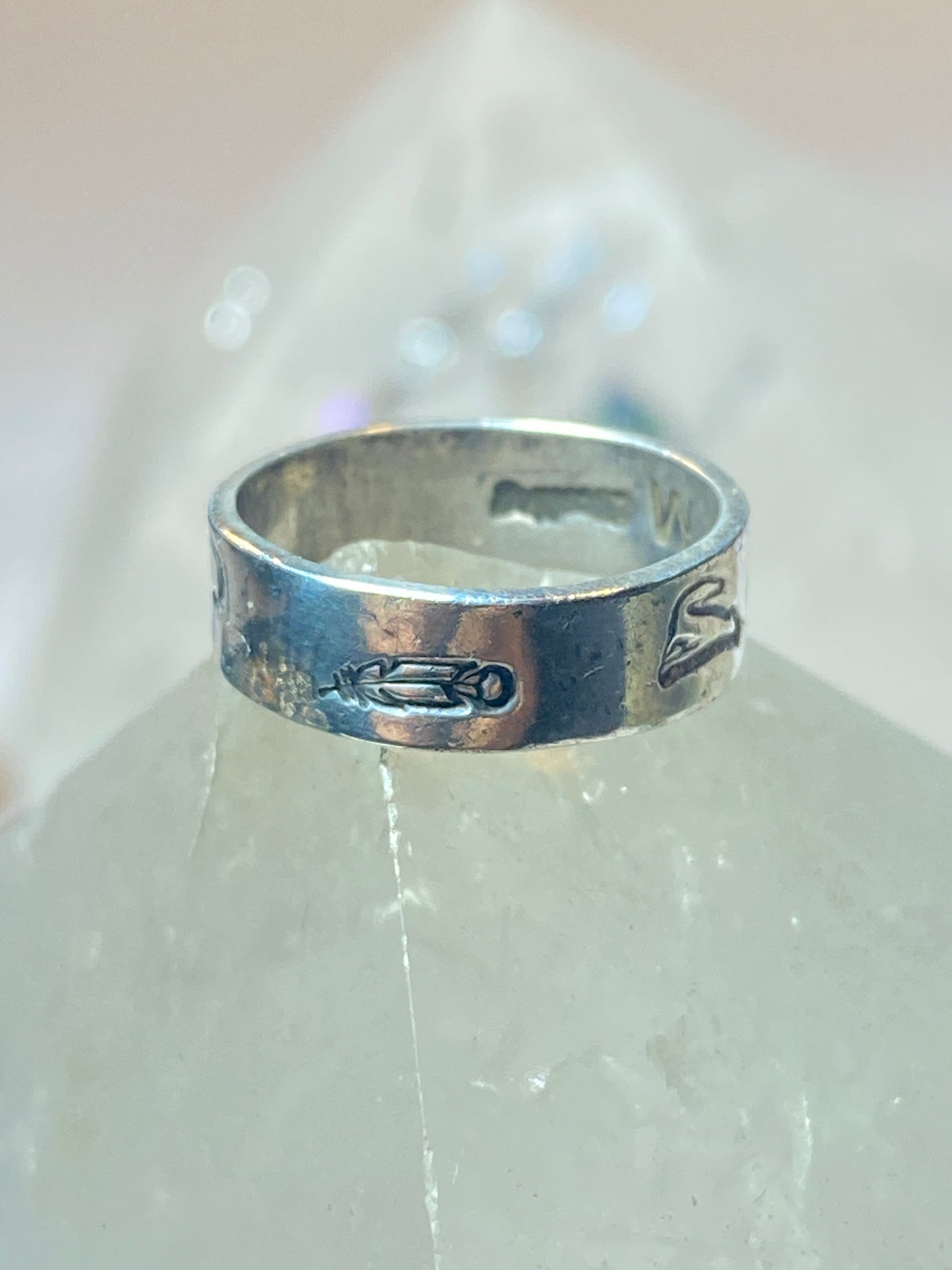 Animal ring size 4.25 feather wolf buffalo band pinky southwest sterling silver