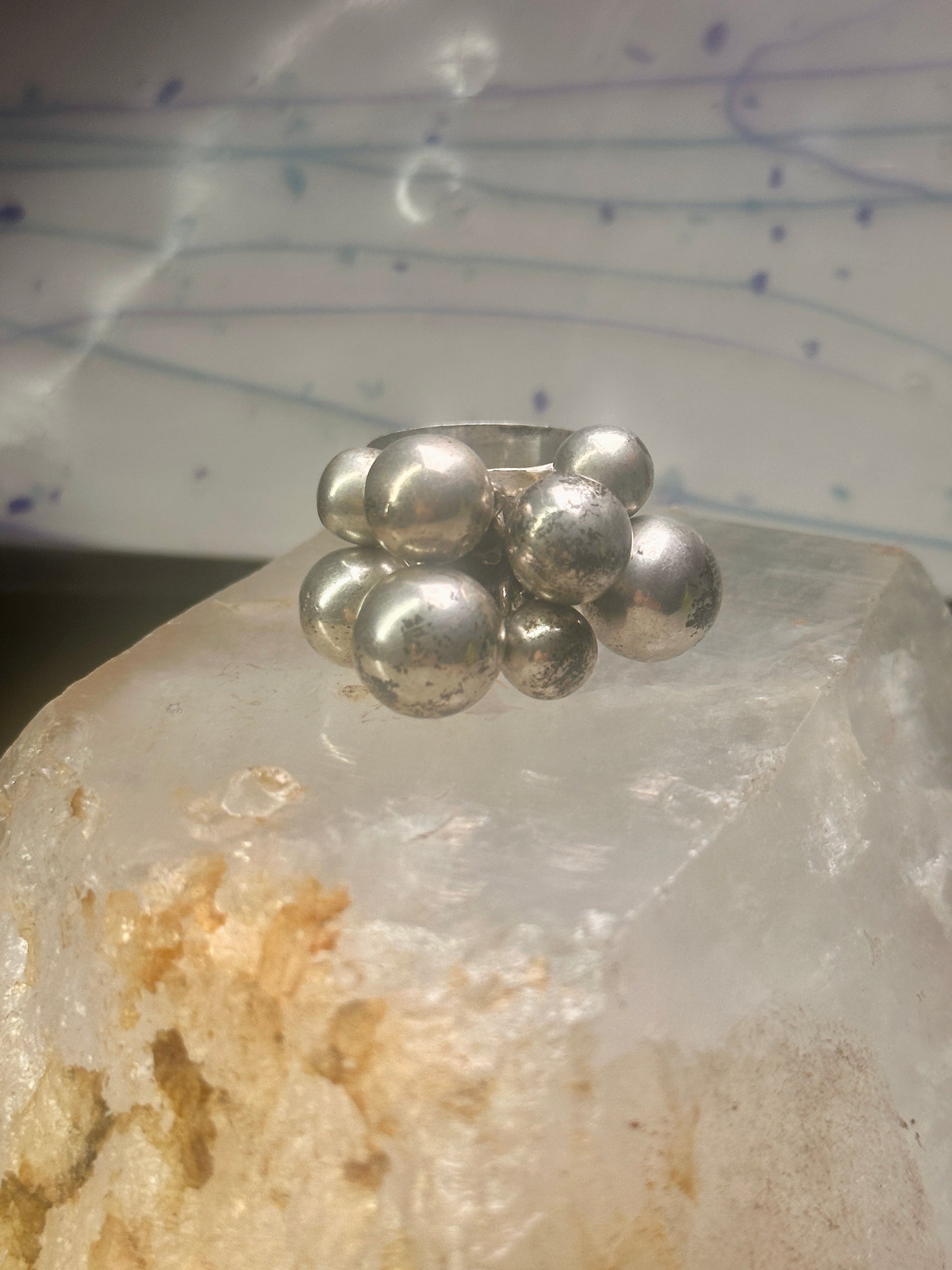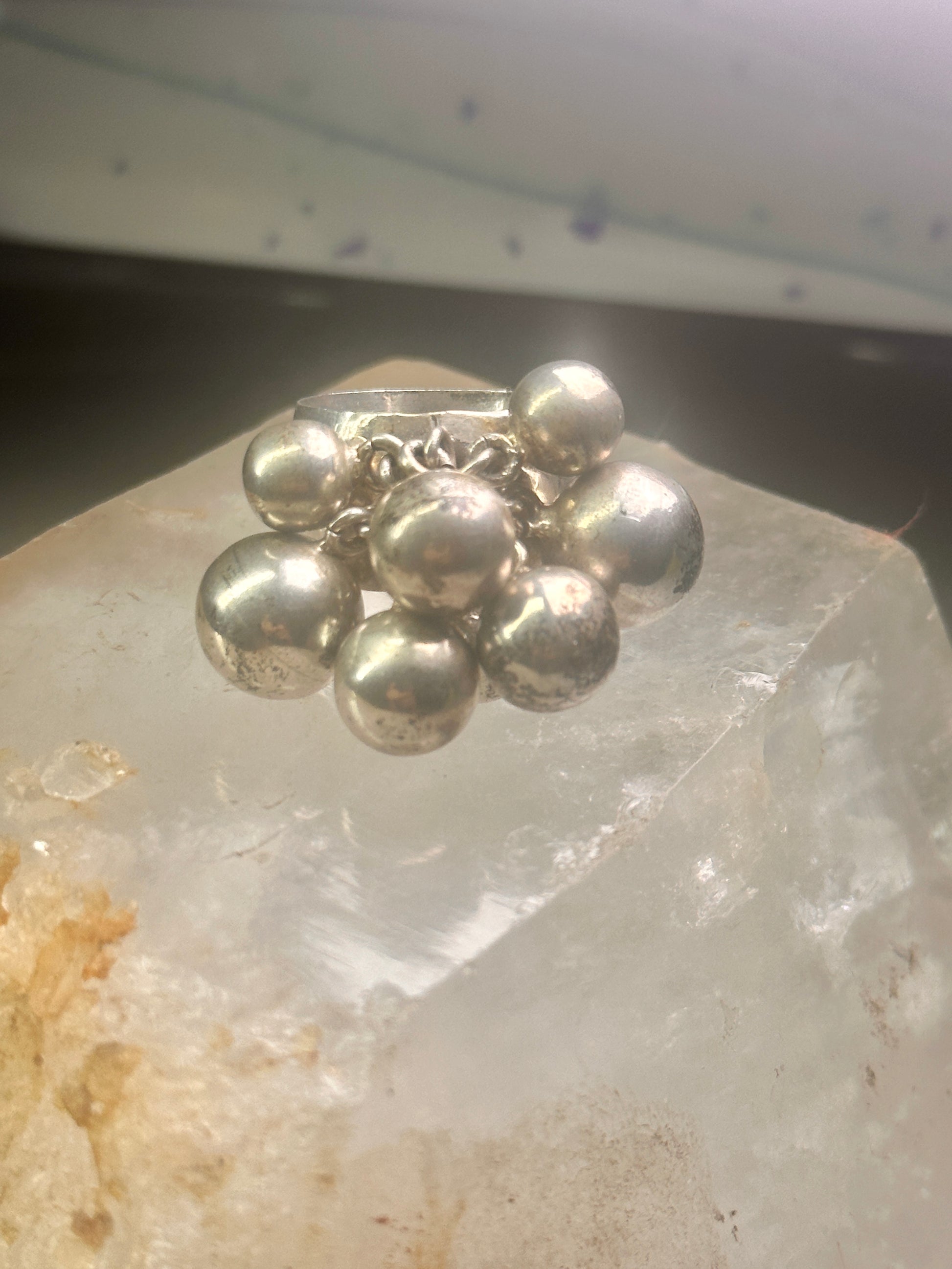 Bead Cluster ring moving Heavy balls cha cha wide band size 7.50 sterling silver women 1970's