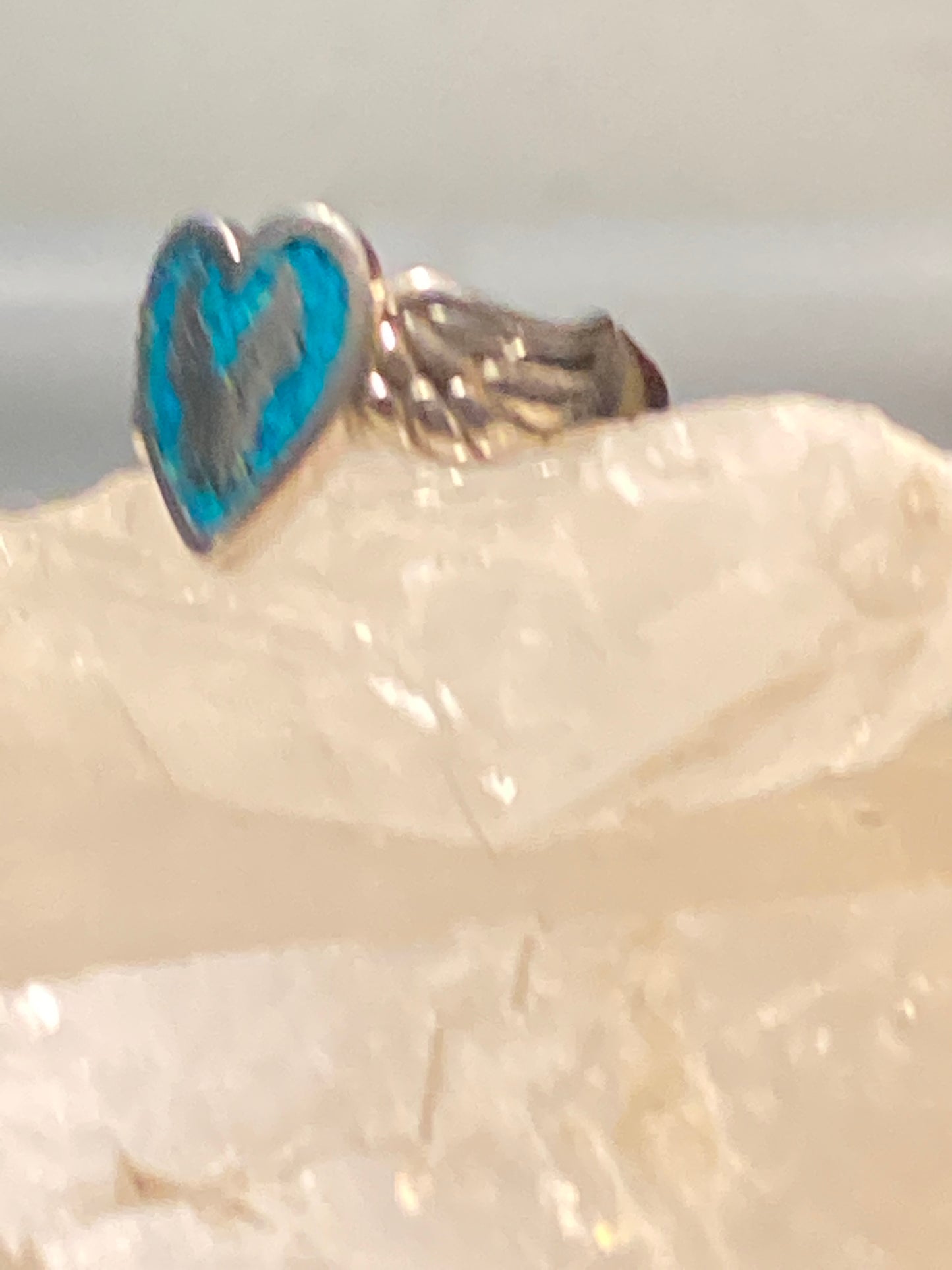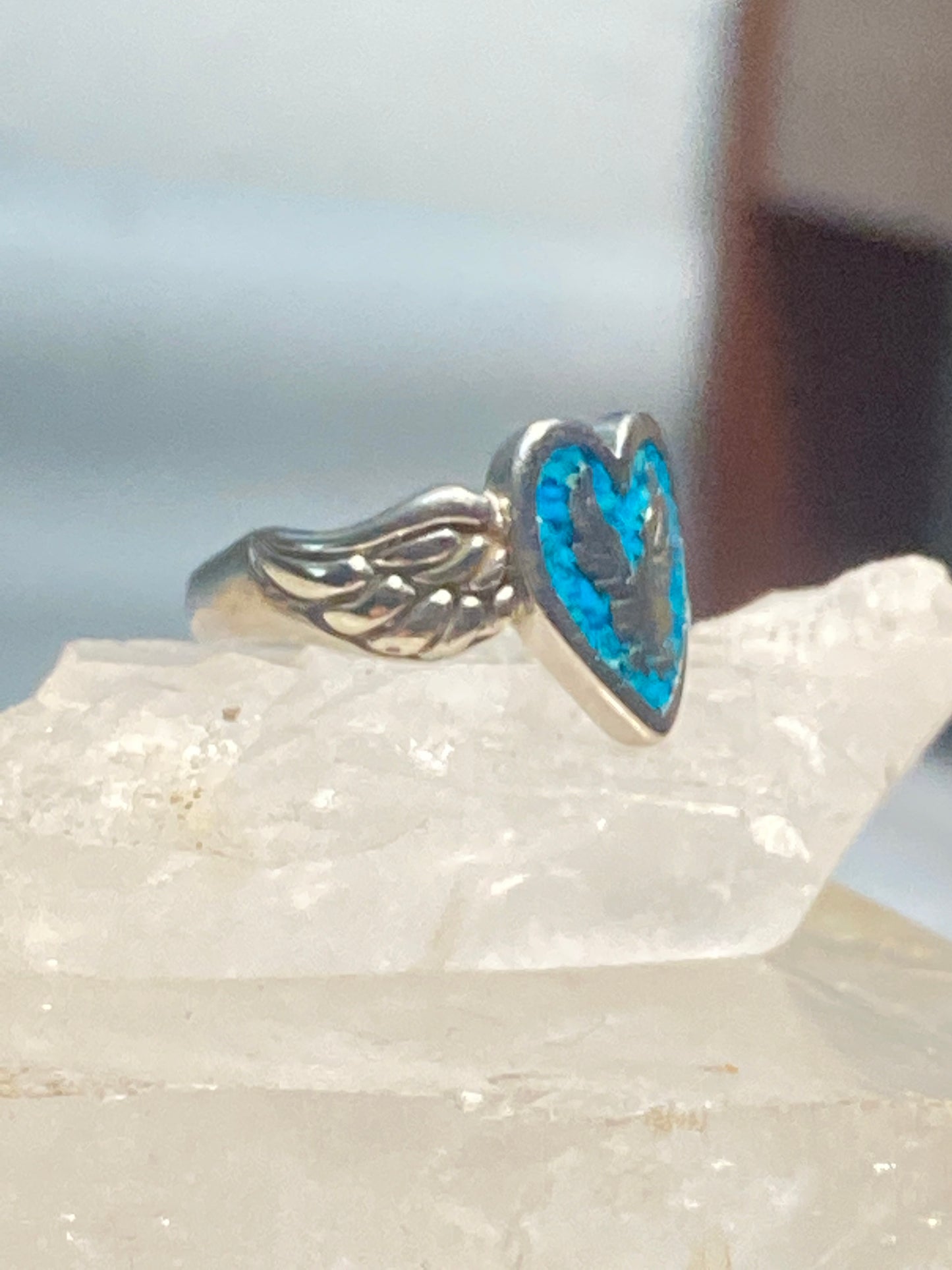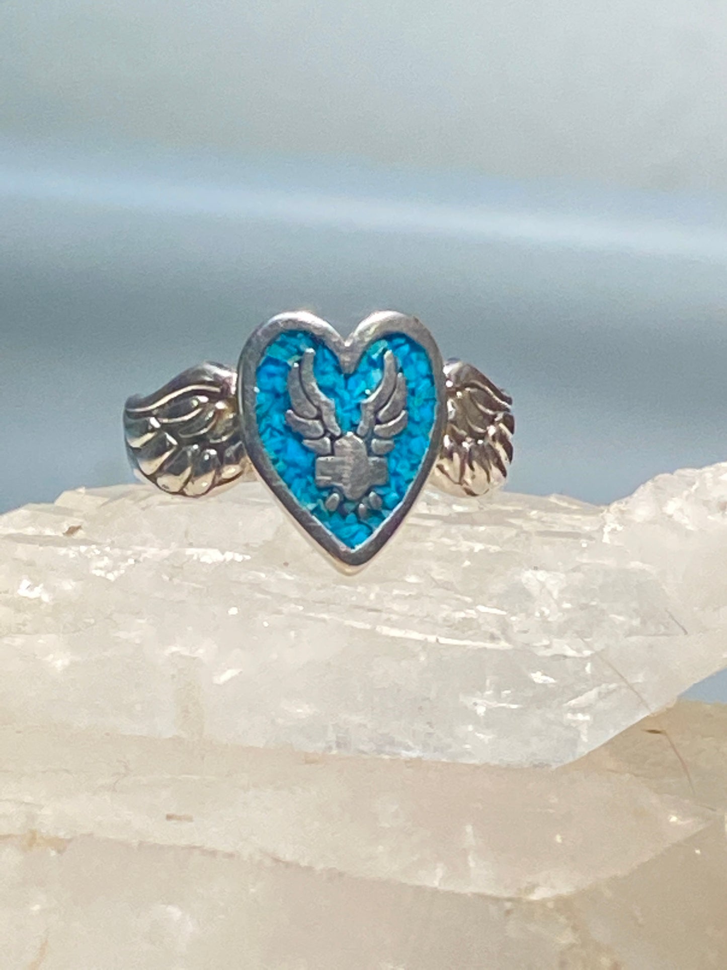 Biker ring heart w wings band turquoise chips southwest sterling silver women